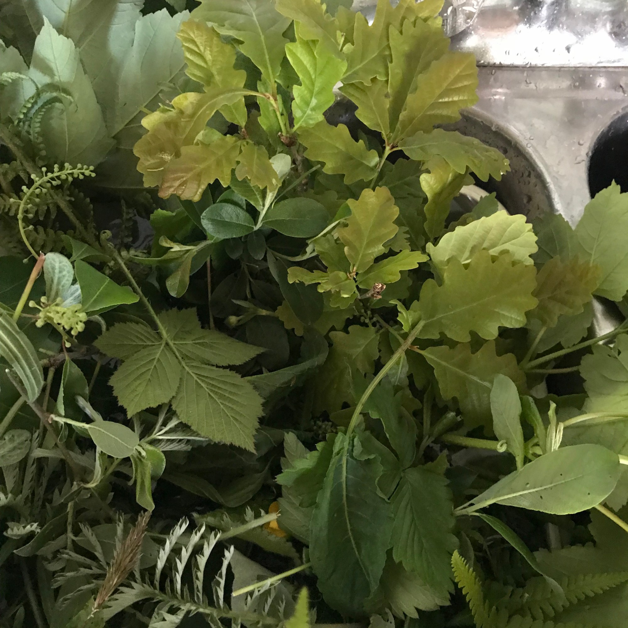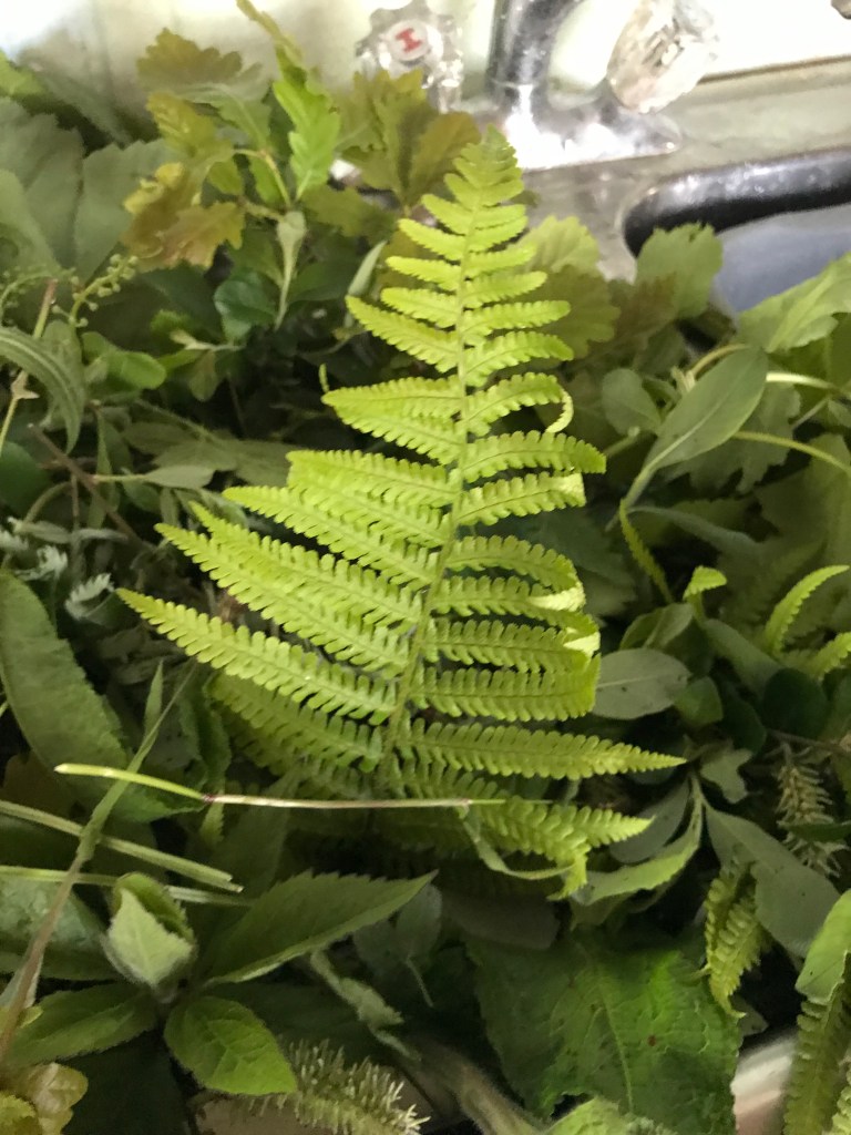 So here it is, when lifting the leaf gently from the absorbent ‘sugar paper’ surface, the royal blue imprint of the nine patterned mid-ribs of each section gives a fascinating pattern.